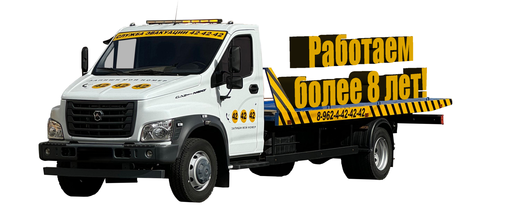 Заказав эвакуацию в 42 42 42, Вы получаете уверенность — мы поможем решить любую проблему, возникшую на Вашем пути. Также, Вы можете рассчитывать на лучшее обслуживание, профессионализм наших сотрудников, а также идеальный баланс между ценой и качеством!